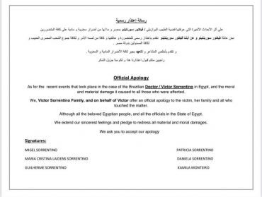 BrasilDestaques Em carta, família de médico brasileiro investigado por assédio sexual no Egito faz pedido de desculpas em inglês e árabe