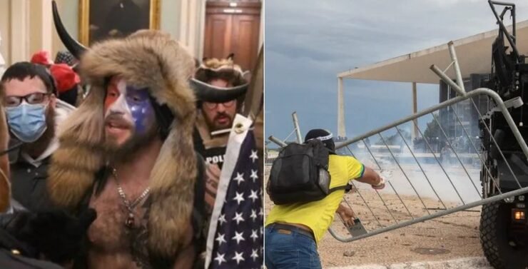 Além disso, a tramitação dos casos que foram efetivamente a julgamento vem sendo mais célere no Brasil do que na Justiça americana. Por fim, como os processos já correm no STF, não será possível aos réus apresentar recursos, ao contrário do que vem ocorrendo nos EUA. Em ambos os casos, simpatizantes dos presidentes recém-derrotados pelas urnas — Jair Bolsonaro e Donald Trump — investiram contras as instituições federais.