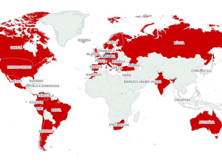 De acordo com levantamento realizado pela CNN, atualizado na quinta-feira (14), ao menos 58 países confirmaram casos da doença (veja o mapa).