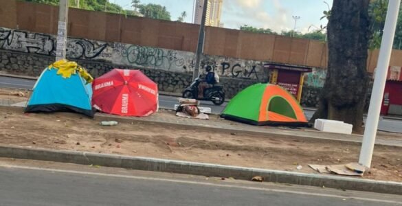 Os ambulantes que vão trabalhar no carnaval de Salvador montaram acampamentos para garantir o lugar nas vendas do circuito Dodô, na Barra/Ondina. Nesta quarta-feira (31), alguns já estão no local, oito dias antes do...