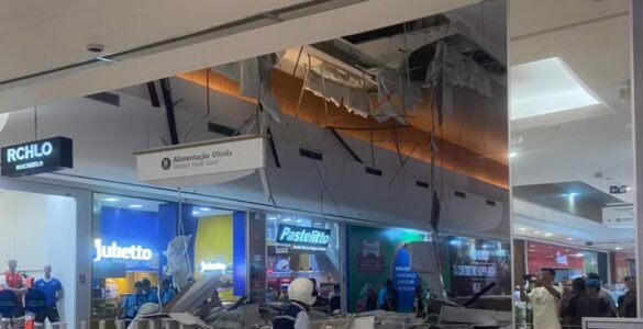 Parte do teto de uma praça de alimentação do Shopping Tacaruna, no Centro do Recife, desabou na noite desta terça-feira, 9. Imagens que circulam pelas redes sociais mostram destroços da estrutura na área de mesas e...