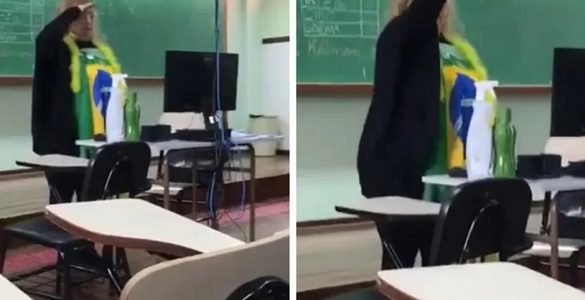 Uma professora foi flagrada fazendo um gesto nazista dentro da sala em uma escola de Ponta Grossa, no Paraná. Segundo o jornal O Globo, a cena teria acontecido no sábado (8), sendo filmada por alunos. Nas imagens...
