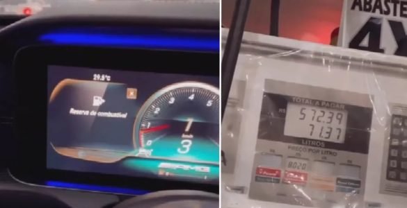O cantor Gusttavo Lima gravou vídeos mostrando o carro quase sem combustível e preso no trânsito de Goiânia. Ao chegar ao posto para abastecer, se assustou com o preço da gasolina e brincou pedindo para o frentista...