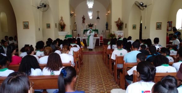 Estudantes e professores da Escola Municipal Dr. Colbert Martins da Silva participaram de uma missa realizada nesta quinta-feira, 27, na Igreja de Nossa Senhora do Carmo, no distrito de Jaguara, em Feira de Santana, em...