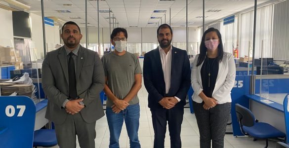 O presidente da OAB Subseção Feira de Santana, Raphael Pitombo, o presidente da Comissão de Direito Previdenciário, Carvalho Neto, e a vice-presidente da referida comissão, Cristine Nascimento, se reuniram com o gerente...