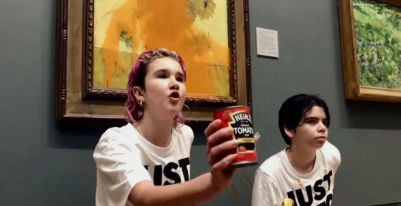 Ativistas do grupo Just Stop Oil — que pede o fim do uso de combustíveis fósseis — jogaram sopa de tomate no quadro “Os Girassóis”, do pintor holandês Vincent Van Gogh, no Reino Unido, nesta sexta-feira, 14. A obra, que...