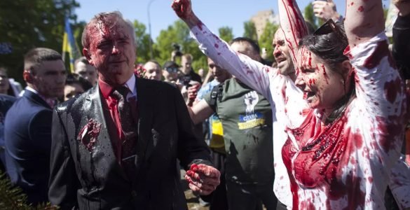 Manifestantes na Polônia lançaram tinta vermelha contra o embaixador russo no país, Sergei Andreev, nesta segunda-feira (9). O protesto aconteceu quando Andreev participava de um ato em celebração ao 77º Dia da Vitória...