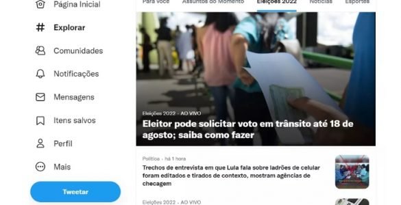 A partir desta quarta-feira (20), o Twitter disponibiliza uma espaço na rede social com informações sobre as eleições do Brasil, marcadas para outubro – 1º turno no dia 2 e, caso necessário, o 2º turno ocorre no...