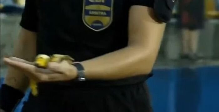 O episódio foi registrado pelas câmeras da TV Brasil. Nas imagens da emissora, é possível ver a quarta árbitra, Andressa Hartmann, recolhendo um pedaço de banana para registrar o caso em súmula, após a reclamação das atletas do Sport.