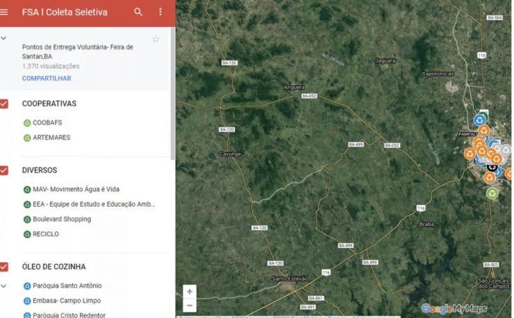 Uma estudante de arquitetura de Feira de Santana, cidade a cerca de 100 km de Salvador, criou um mapa virtual que traz informações sobre pontos de coleta seletiva no município e na capital baiana.