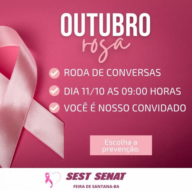 O Sest Senat vai promover nesta terça-feira, (11), uma roda de conversa com alusão ao mês de combate e a prevenção do Câncer de Mama, o Outubro Rosa.