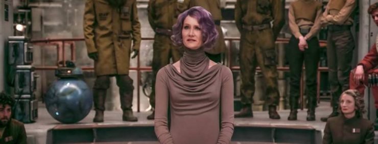 Dern apareceu como a Almirante Amilyn Holdo em Star Wars: Os Últimos Jedi, de 2018. Ela assume o comando das naves da Aliança Rebelde na ausência da General Leia (Carrie Fisher) e realiza uma ousada manobra no final do longa, selando o seu destino.